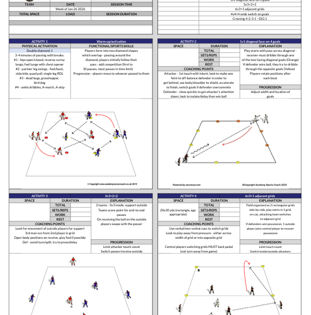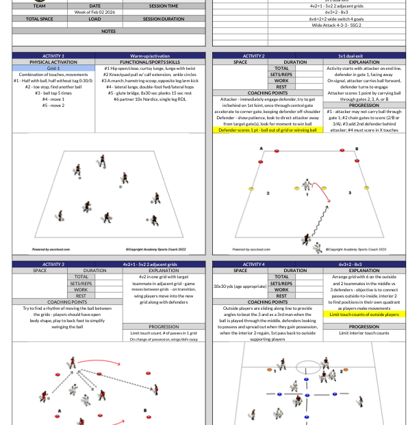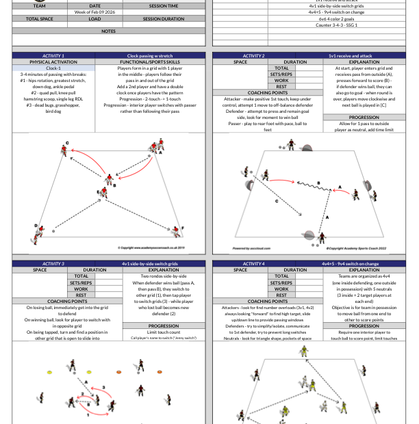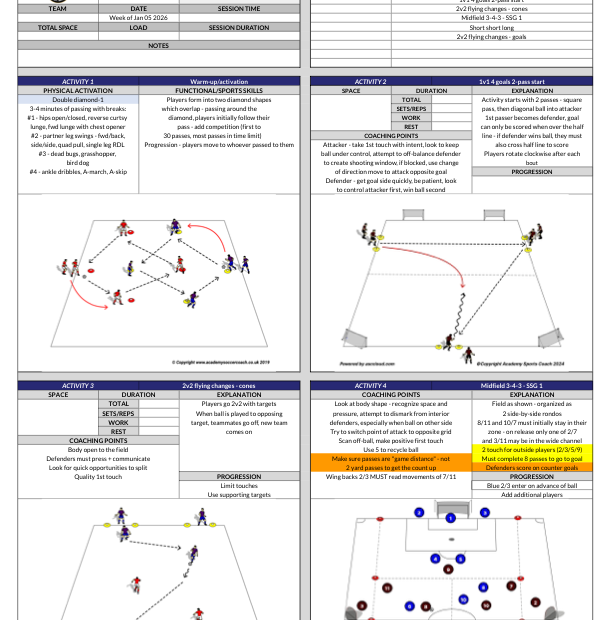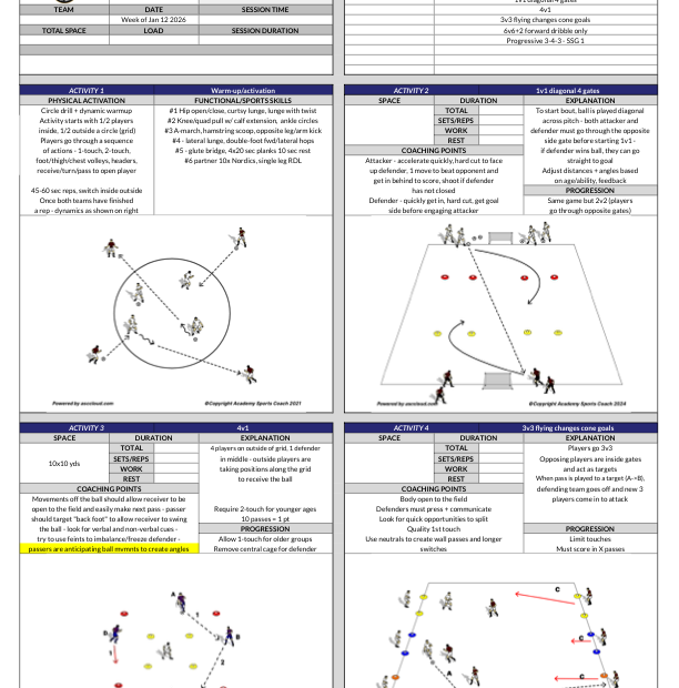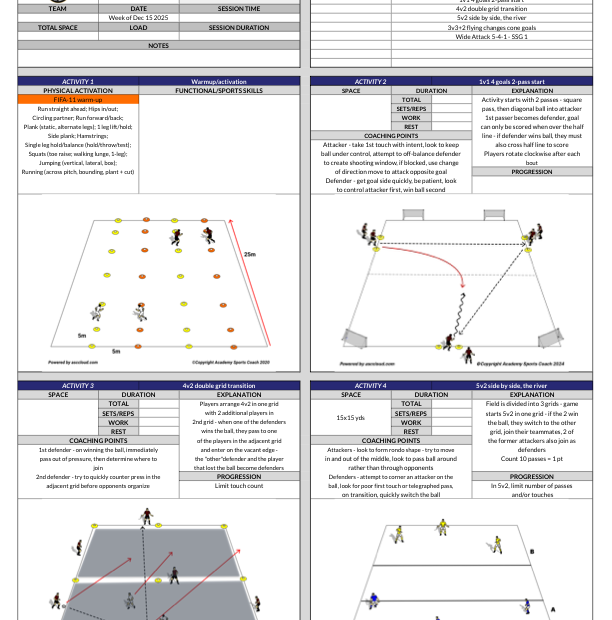 A professional coaching template to save time on the pitch and organize your training sessions with clear, Academy-standard structures