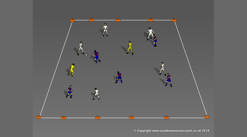 This game is designed to give players several scoring options. If the opponent is covering one goal, the player on the ball can choose to… Read More »5v5 2 end goals + 2 midfield goals